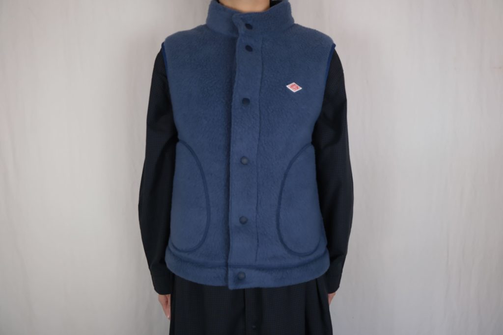 【DANTON ダブルフェイスボア スタンドカラーベスト 】