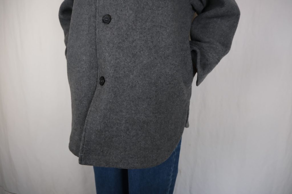 – 広く取った袖幅 / 袖口に溜まる長めの袖丈