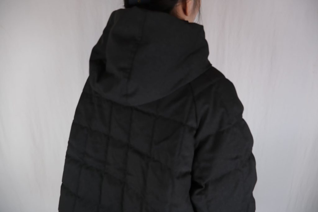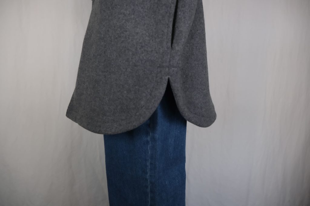 ・背面のダーツによるコクーンシルエットが特徴