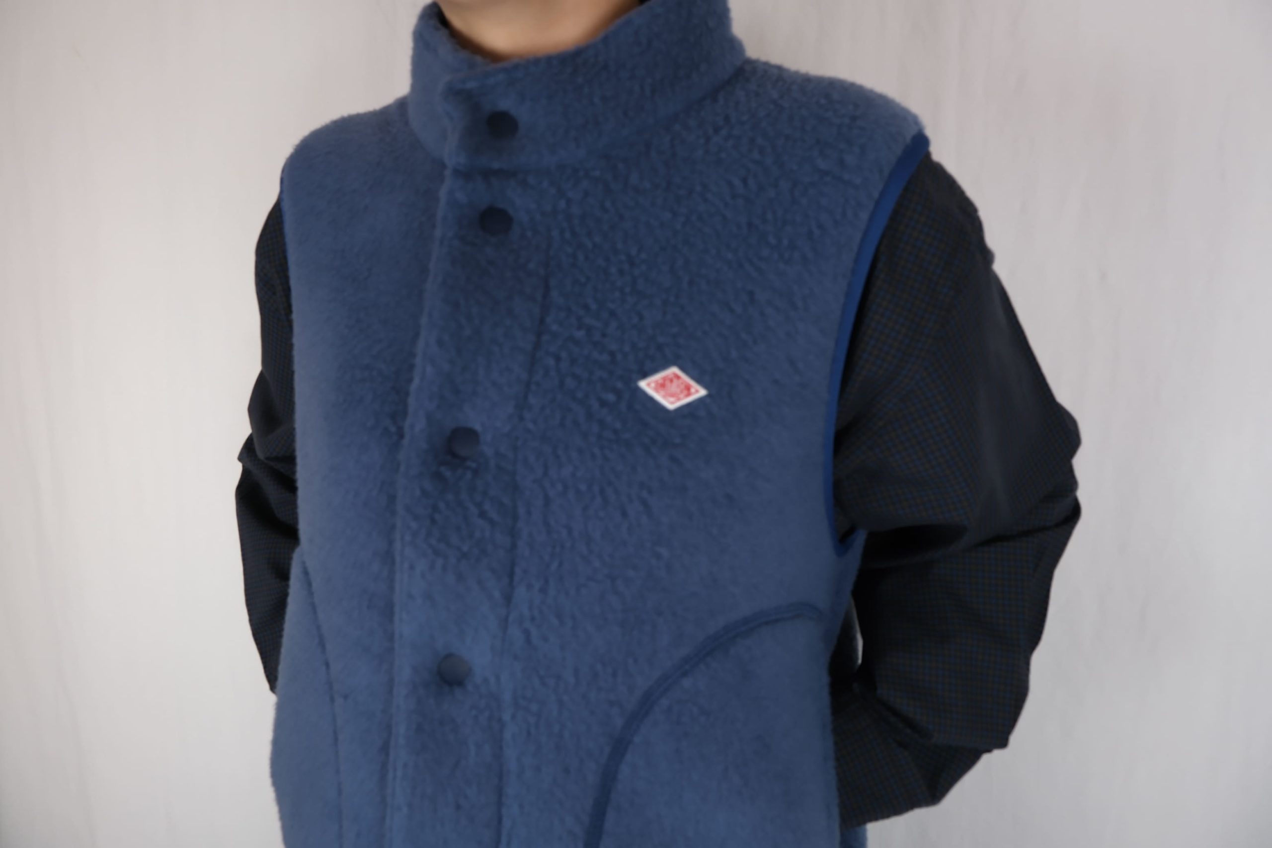 【DANTON ダブルフェイスボア スタンドカラーベスト 】