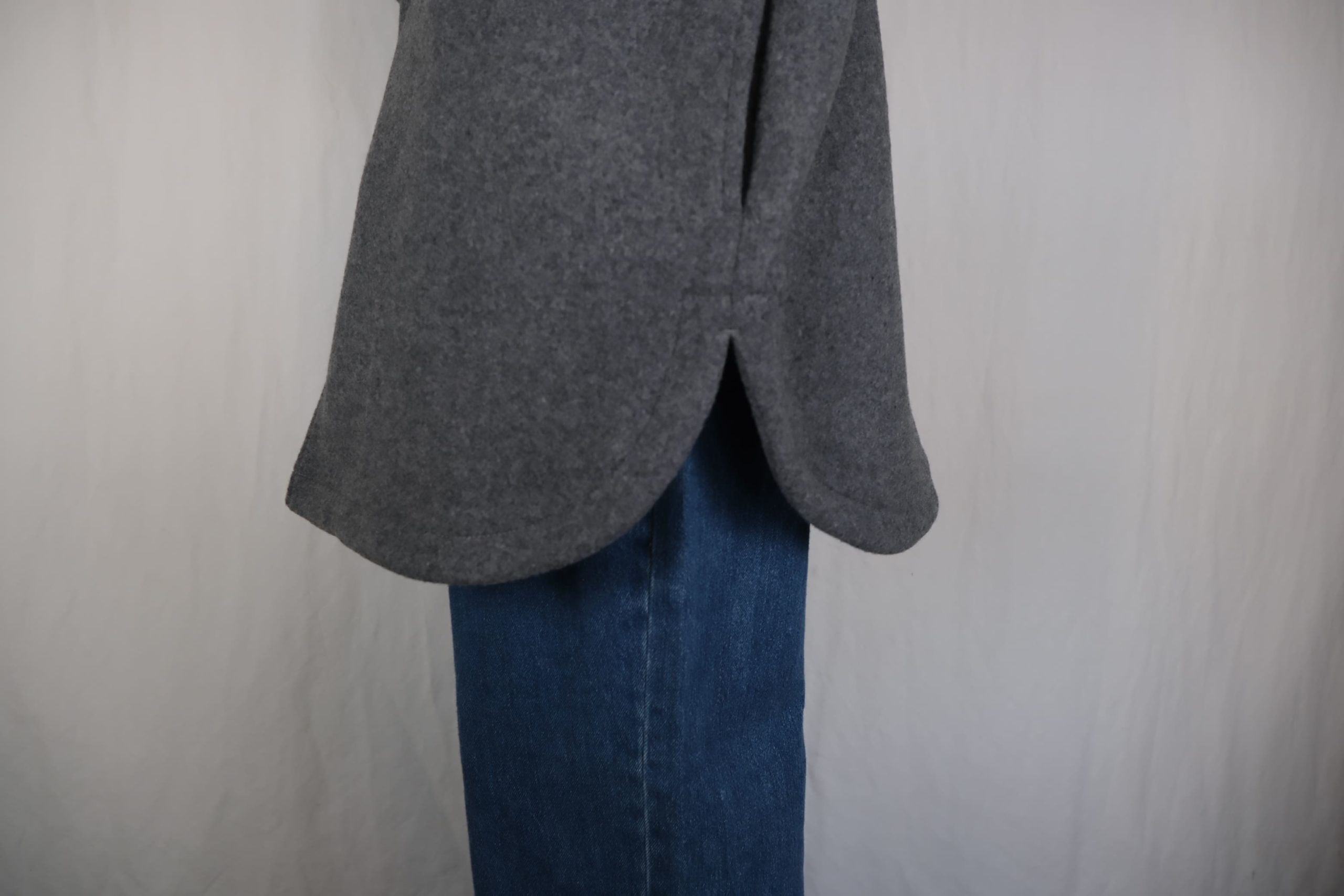 ・背面のダーツによるコクーンシルエットが特徴