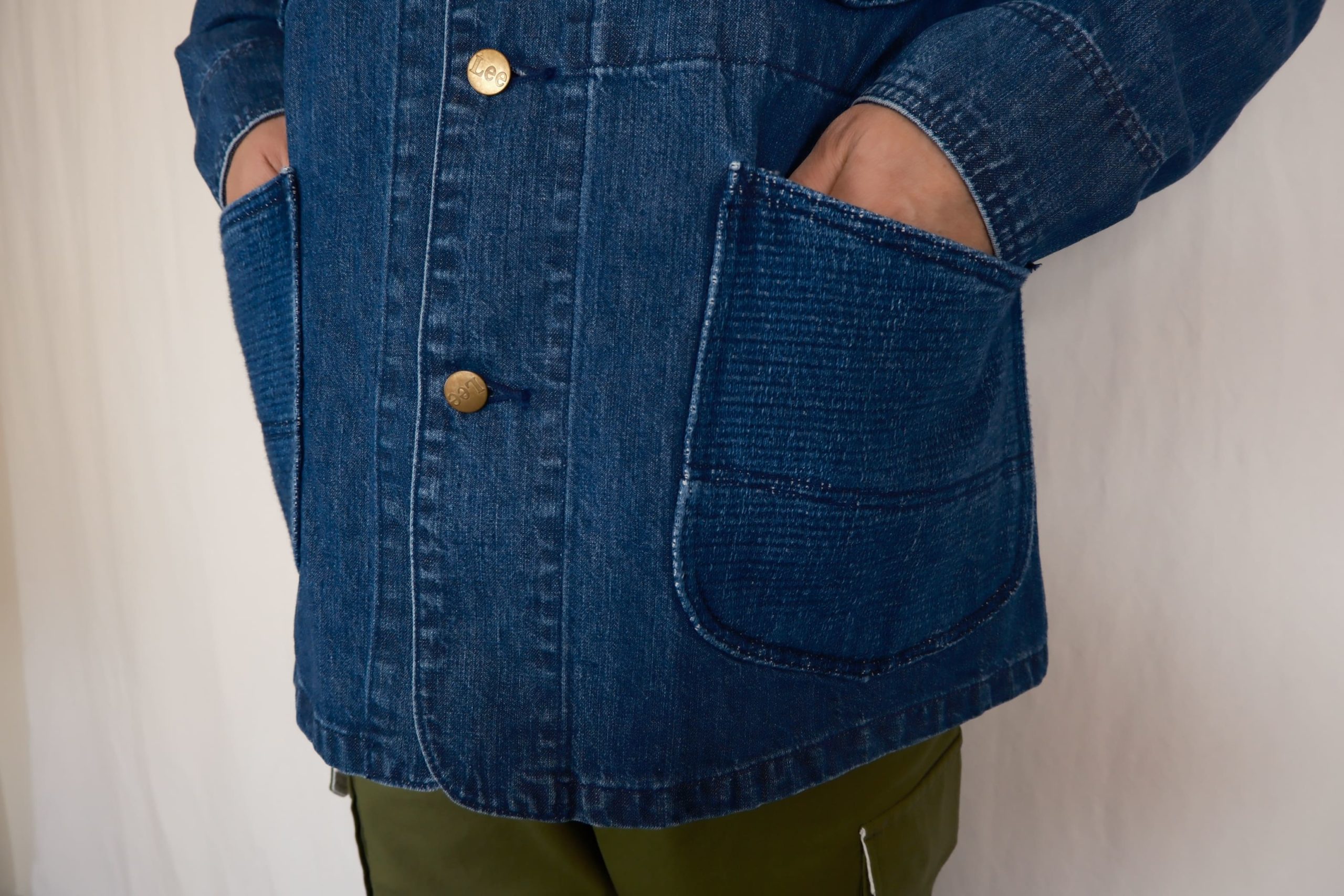 Leeがワークウェア用に採用した強撚糸を用いた10.5ozデニム。糸の撚りや織り密度の工夫により強度を増しています。動きやすく軽いという機能性がありながら耐久性も必要不可欠とする、ワークウェアならではのデニムです。ボディにはこちらのJELT DENIMを使っております。