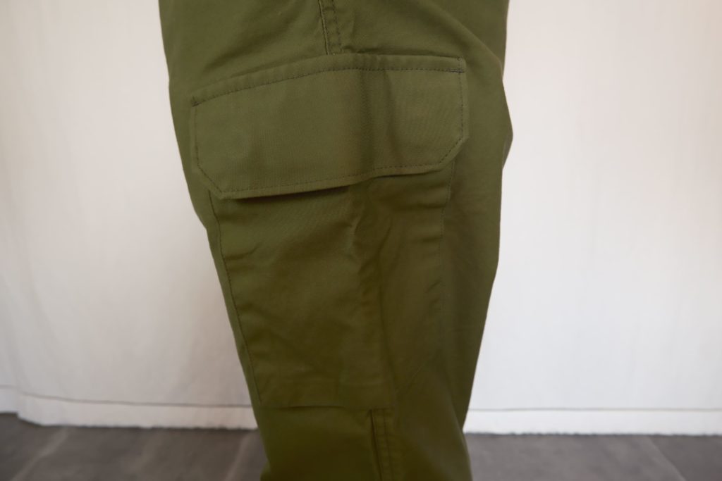 フランス軍M47カーゴパンツをデザインベースにしてありますが、シルエットや細やかなデティールもORIBEなりにモディファイされて、老若男女履いていただけるカーゴパンツになっています。裾にはアジャスター付き。