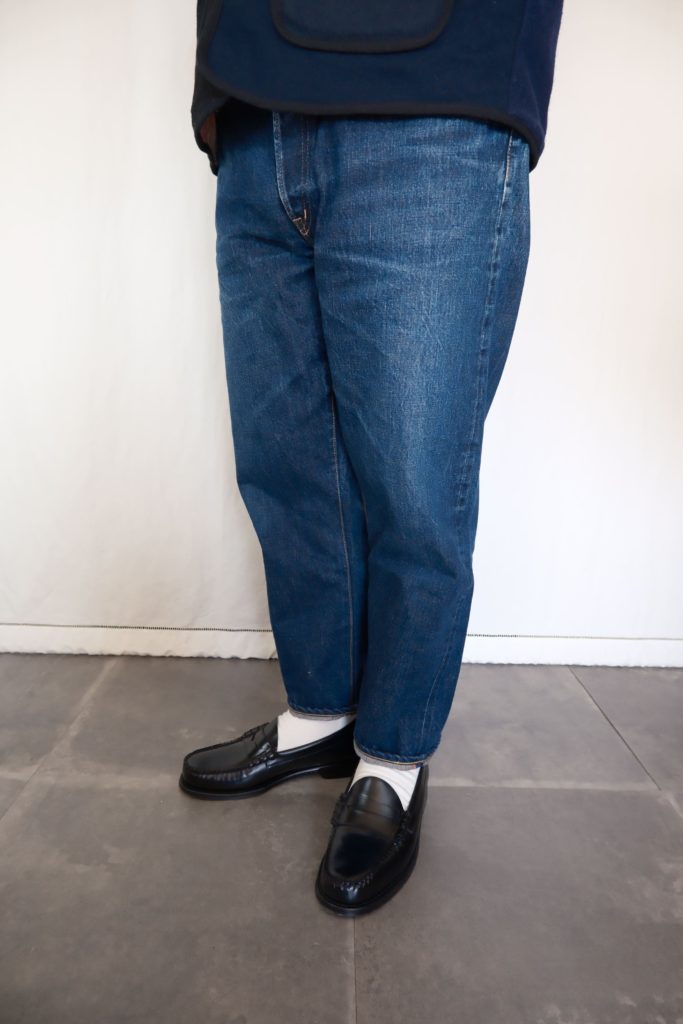聖林公司の初代オリジナルジーンズ「PP4-XX」のジャストレングスモデルです。ロールアップ時にアクセントにもなる、魅力的なオリジナル赤耳デニムを贅沢に使用。初代「PP4-XX」の特徴の一つである、やや太めのテーパードシルエットを残し、ヒップからウエストへのカーブと、腰周りのデザインが見直された穿きやすさが特徴です。14.8オンスデニムで抜群の素材感。穿き込む事で自分の体に馴染み、風合いや表情が一点ものとして変化していきます。カジュアルスタイルには欠かせない、ずっと愛用していただきたい本格的な一本です。