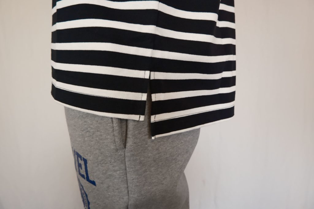 ボーダーの代名詞ともいえるぼーとネックを、日常でよりラフに着られる クルーネック仕様にアレンジ。