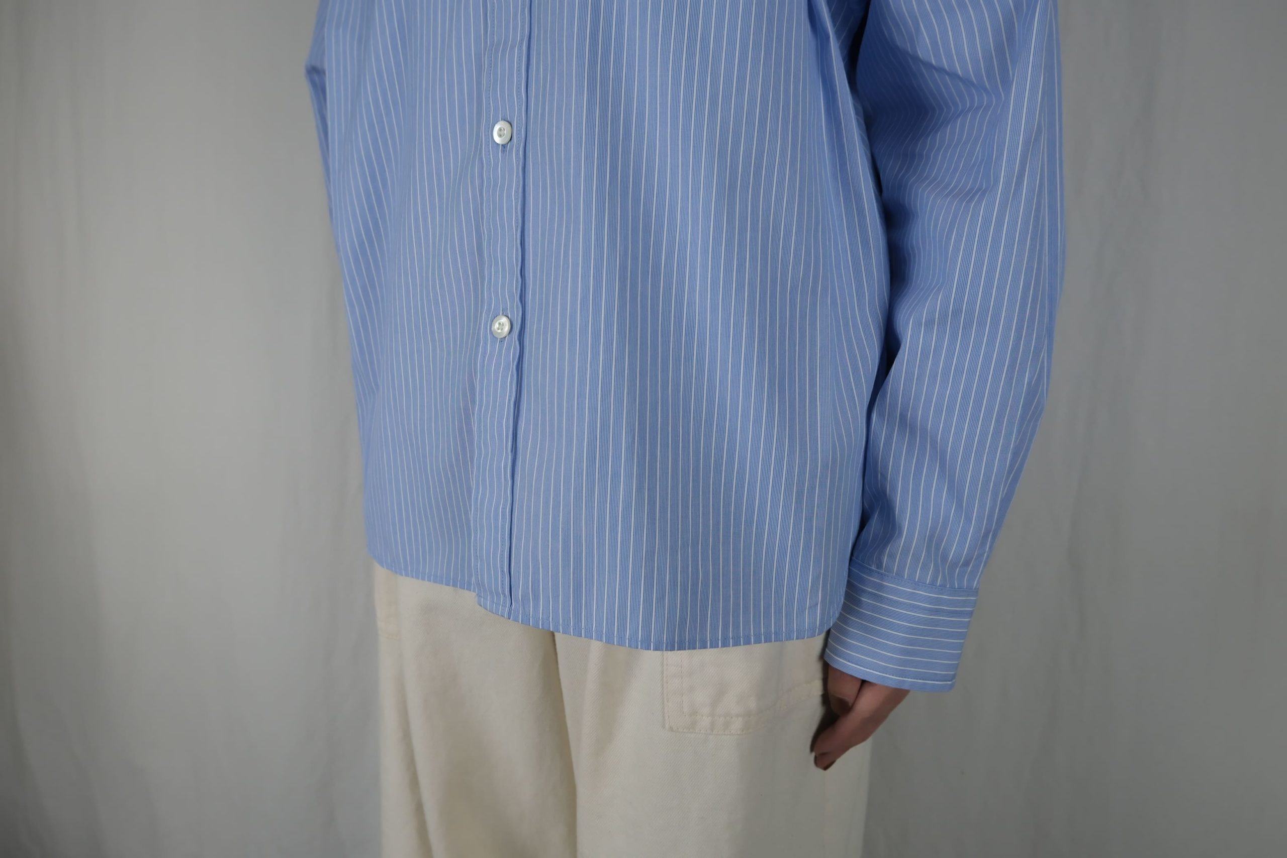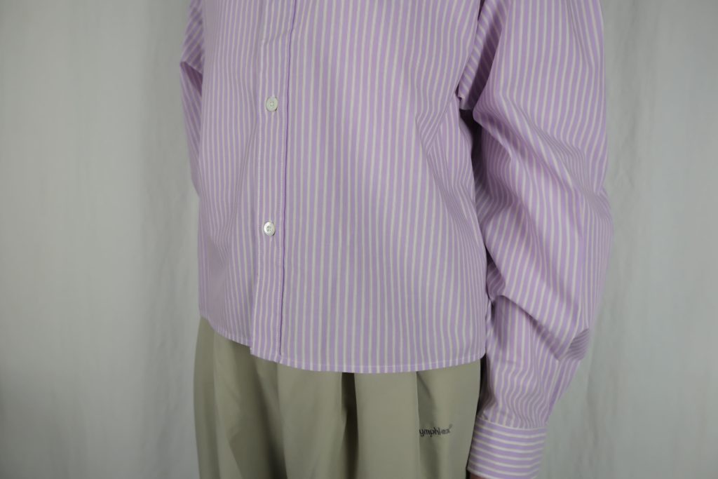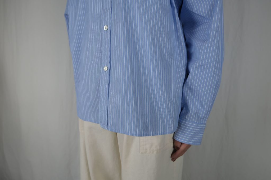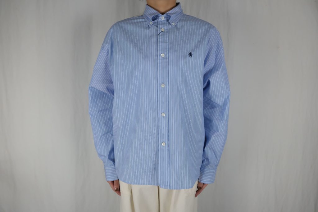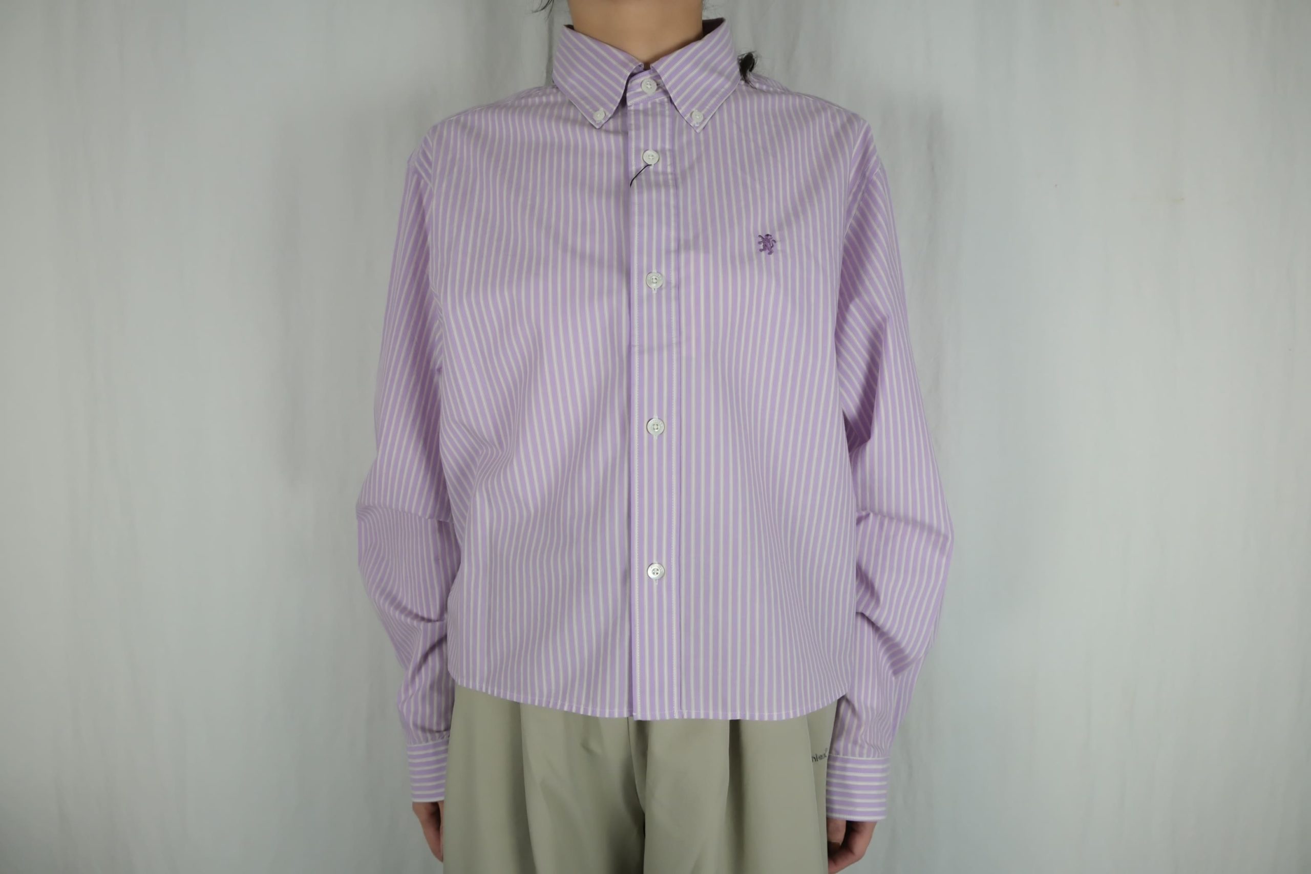 – ショート丈の長袖ボタンダウンシャツ