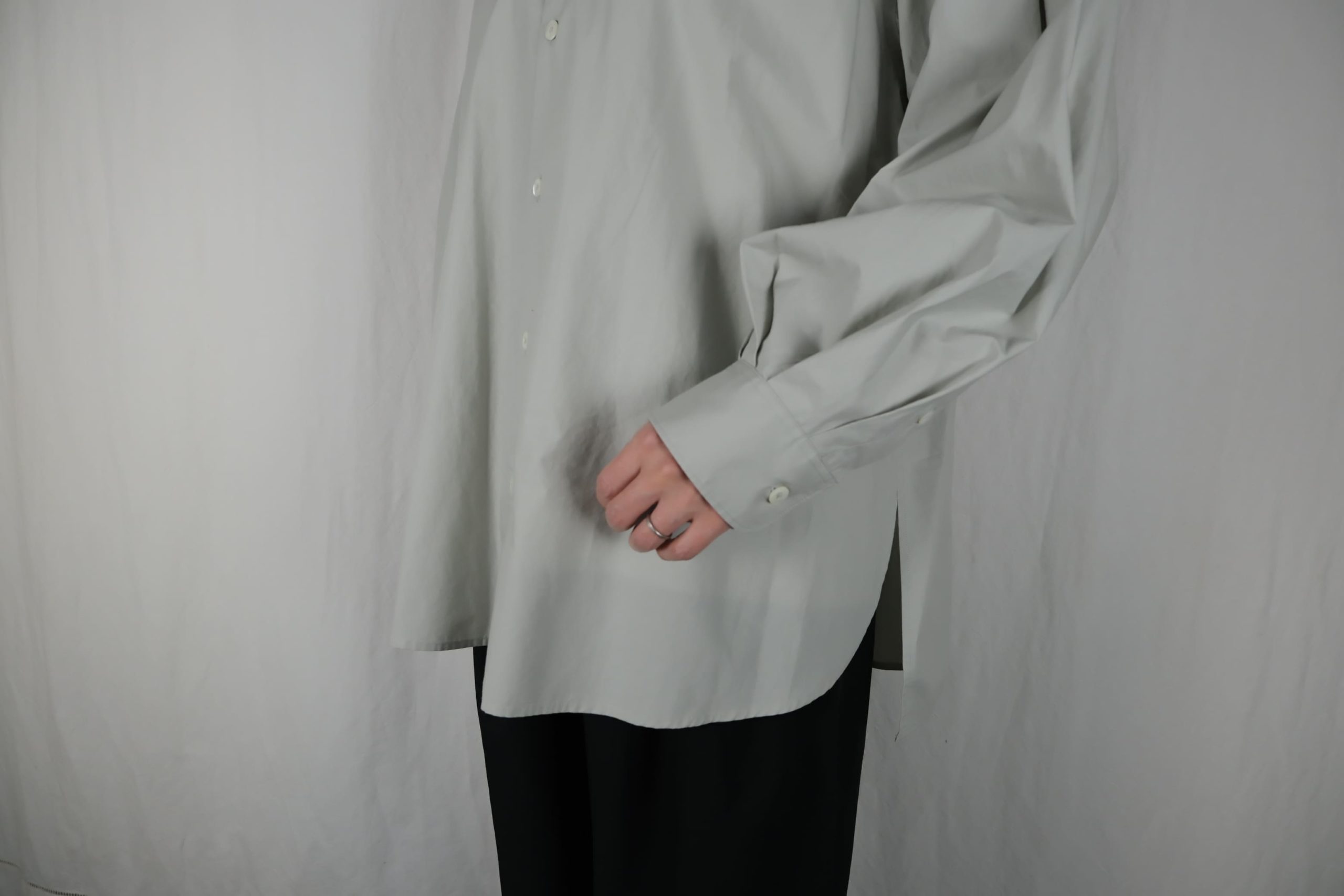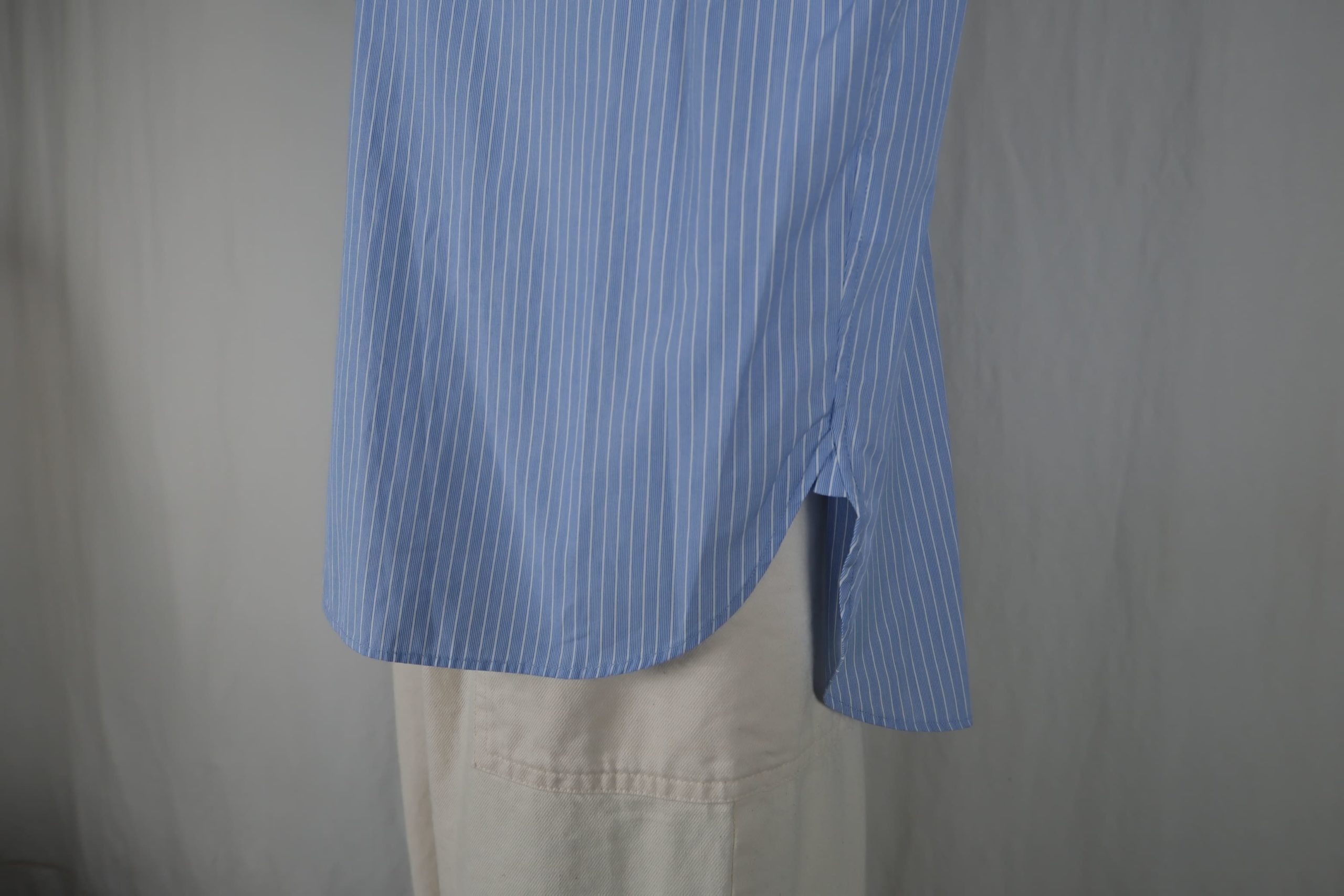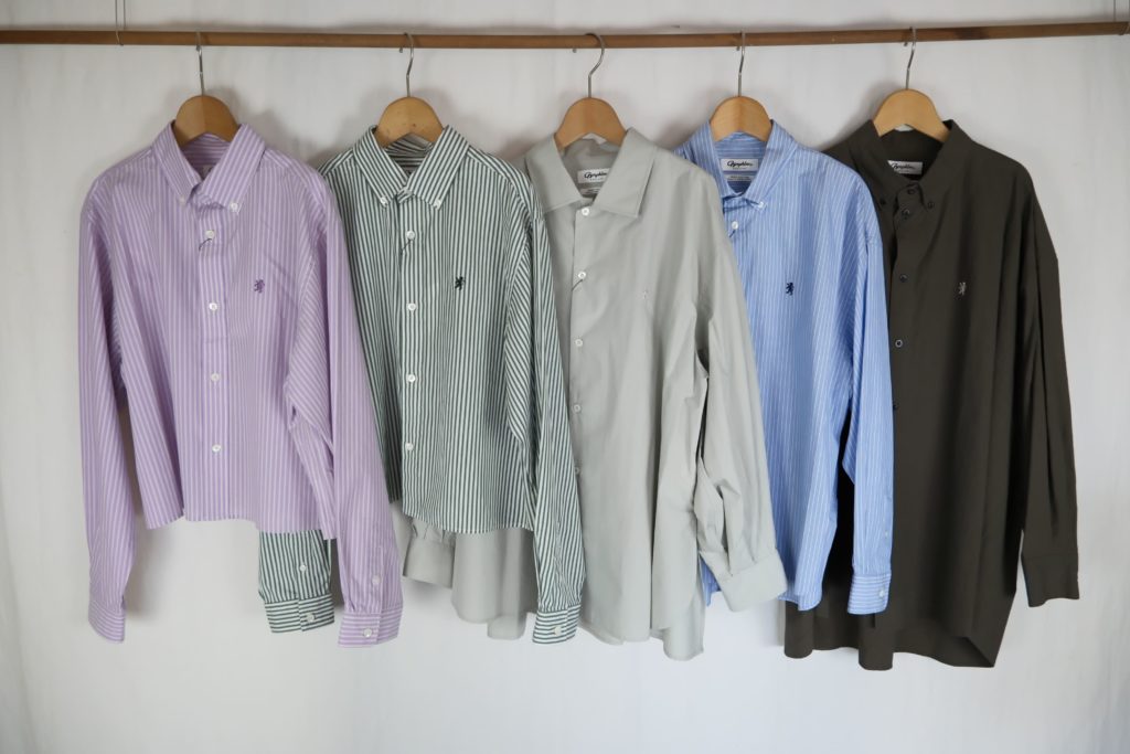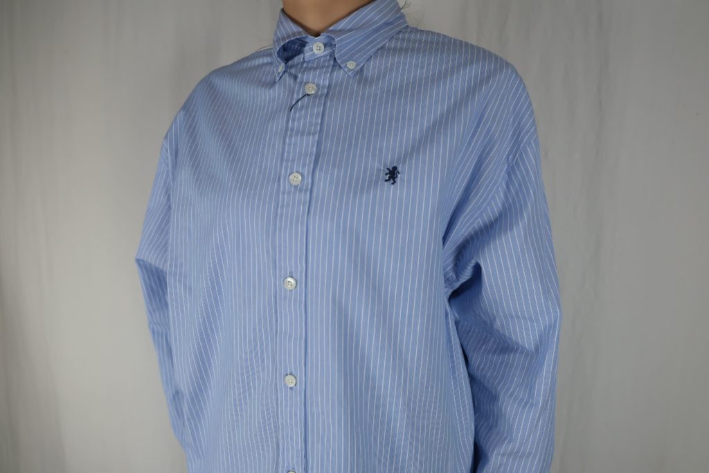 – ショート丈の長袖ボタンダウンシャツ