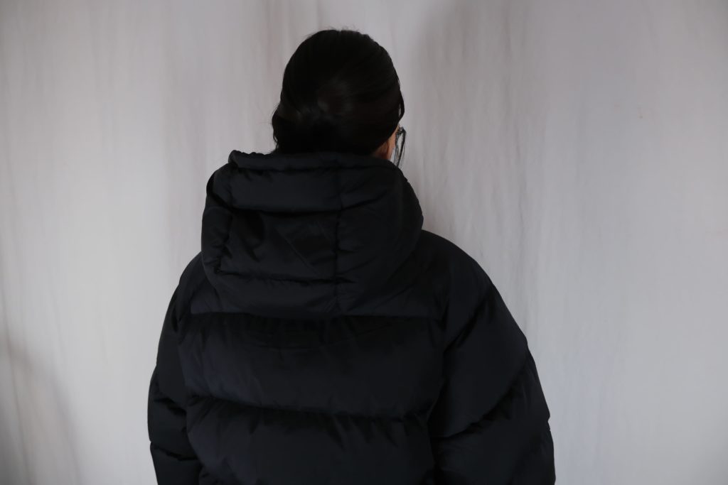 バストやアームホールにゆとりを持たせたシルエットは、中に着るアイテムを選ばず快適に着用可能。