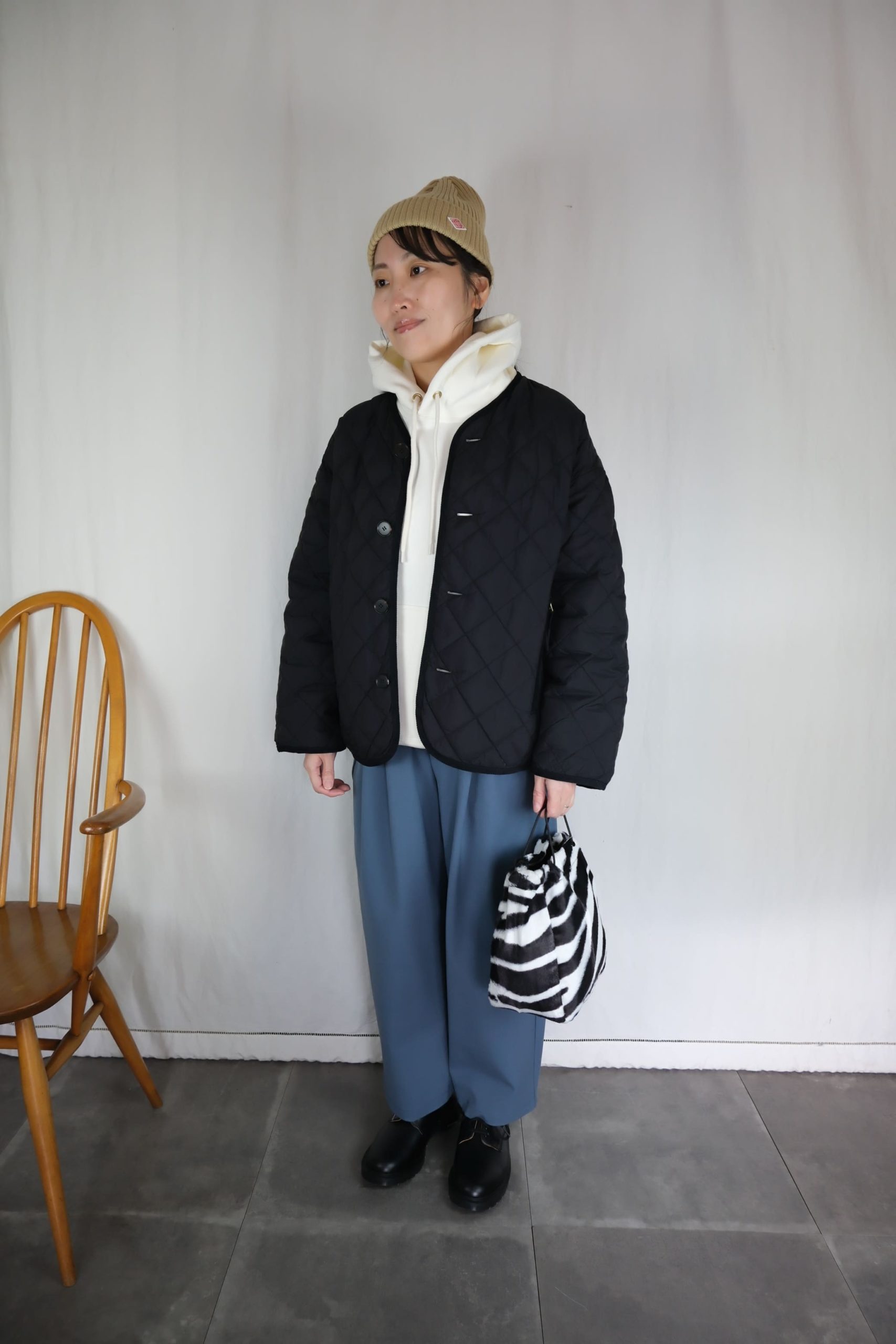 裾をコーデュロイでパイピングすることで、メリハリのあるクラシックな印象に仕上げています。