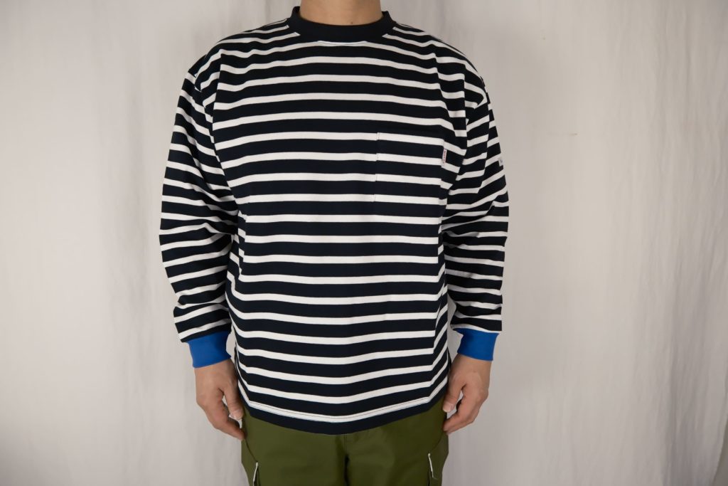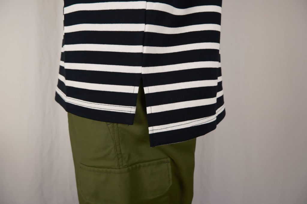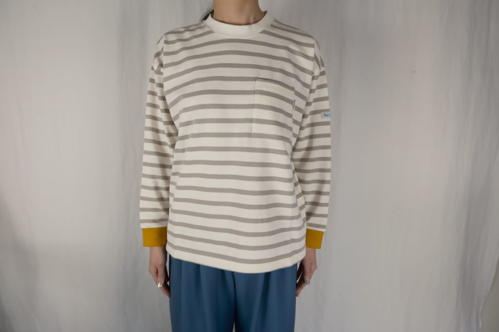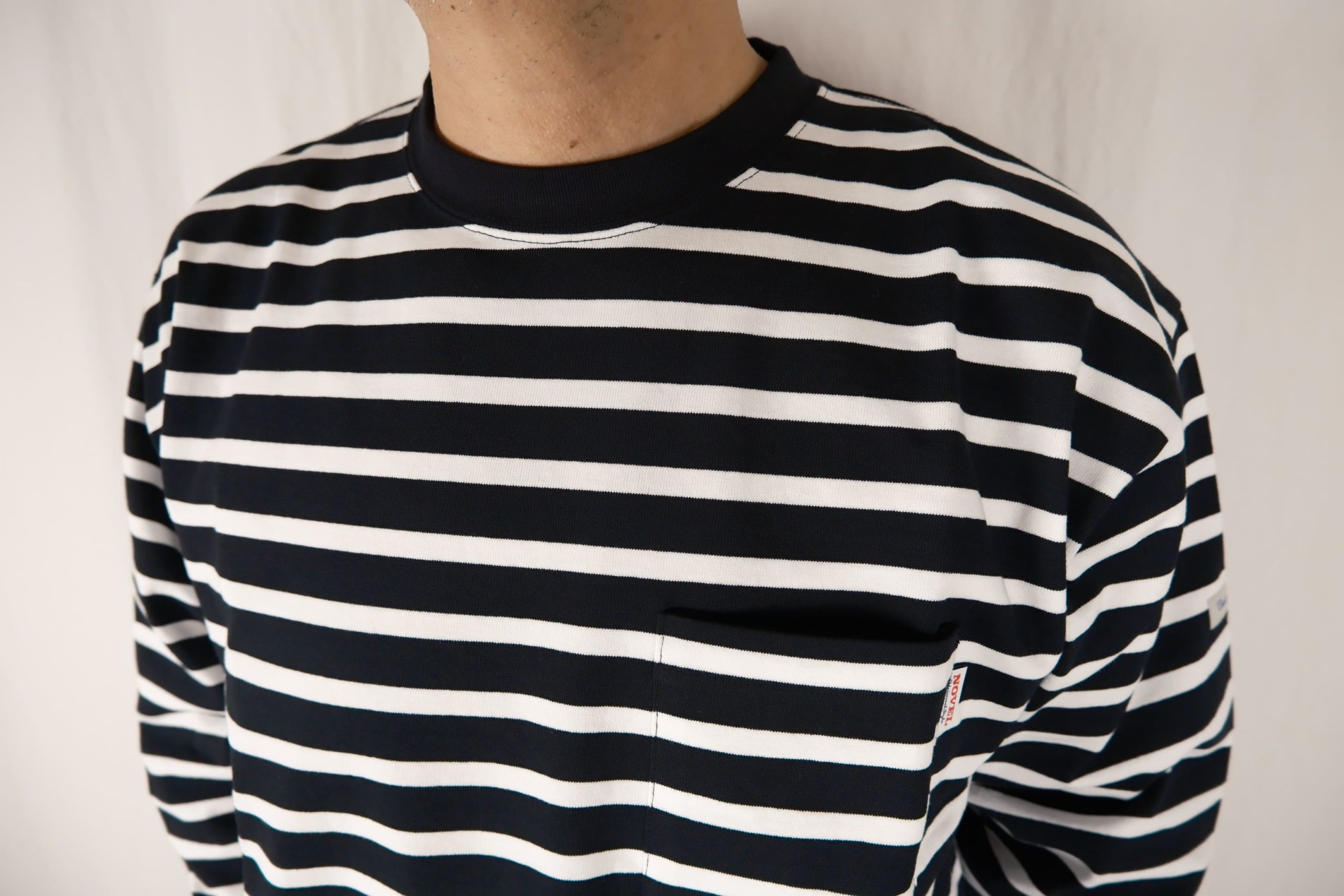 ボーダーの代名詞ともいえるボートネックを、日常でよりラフに着られる クルーネック仕様にアレンジ。