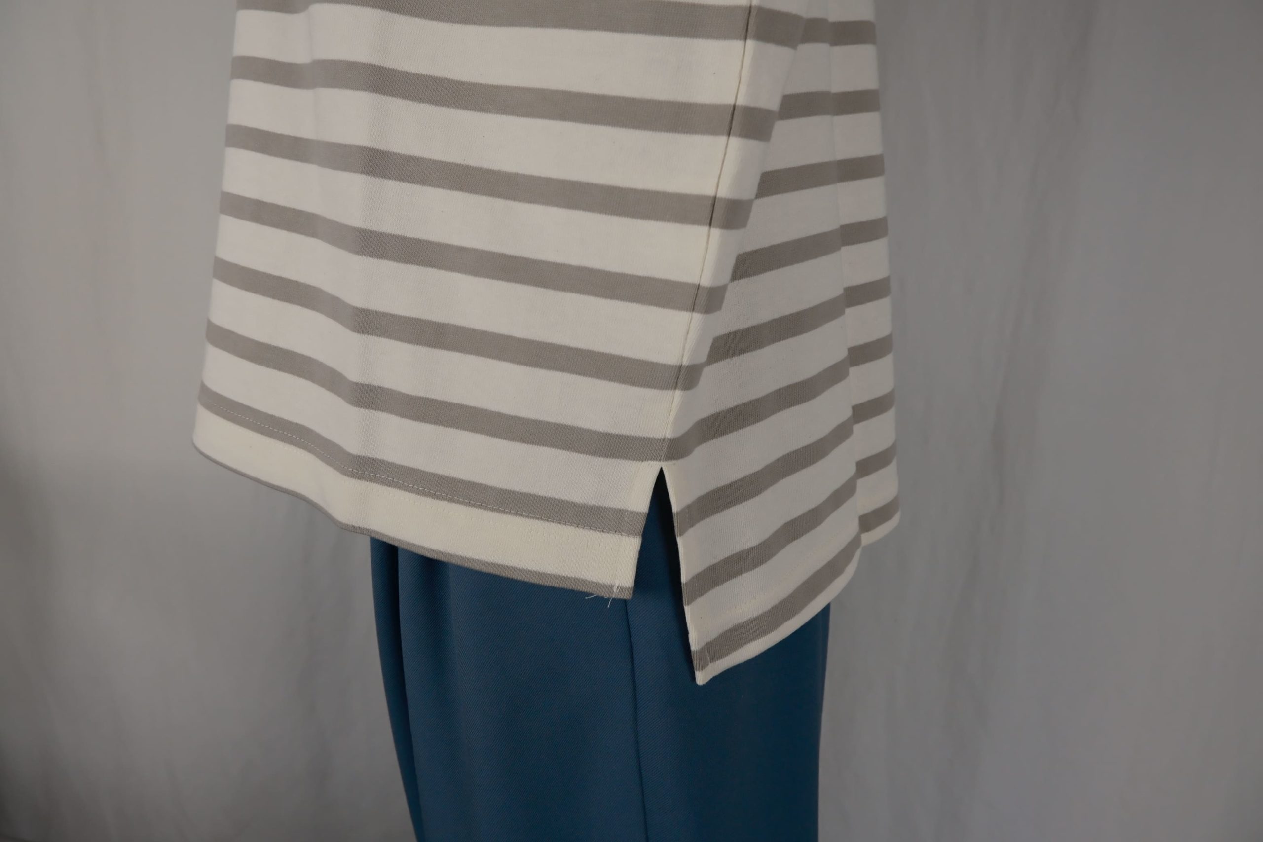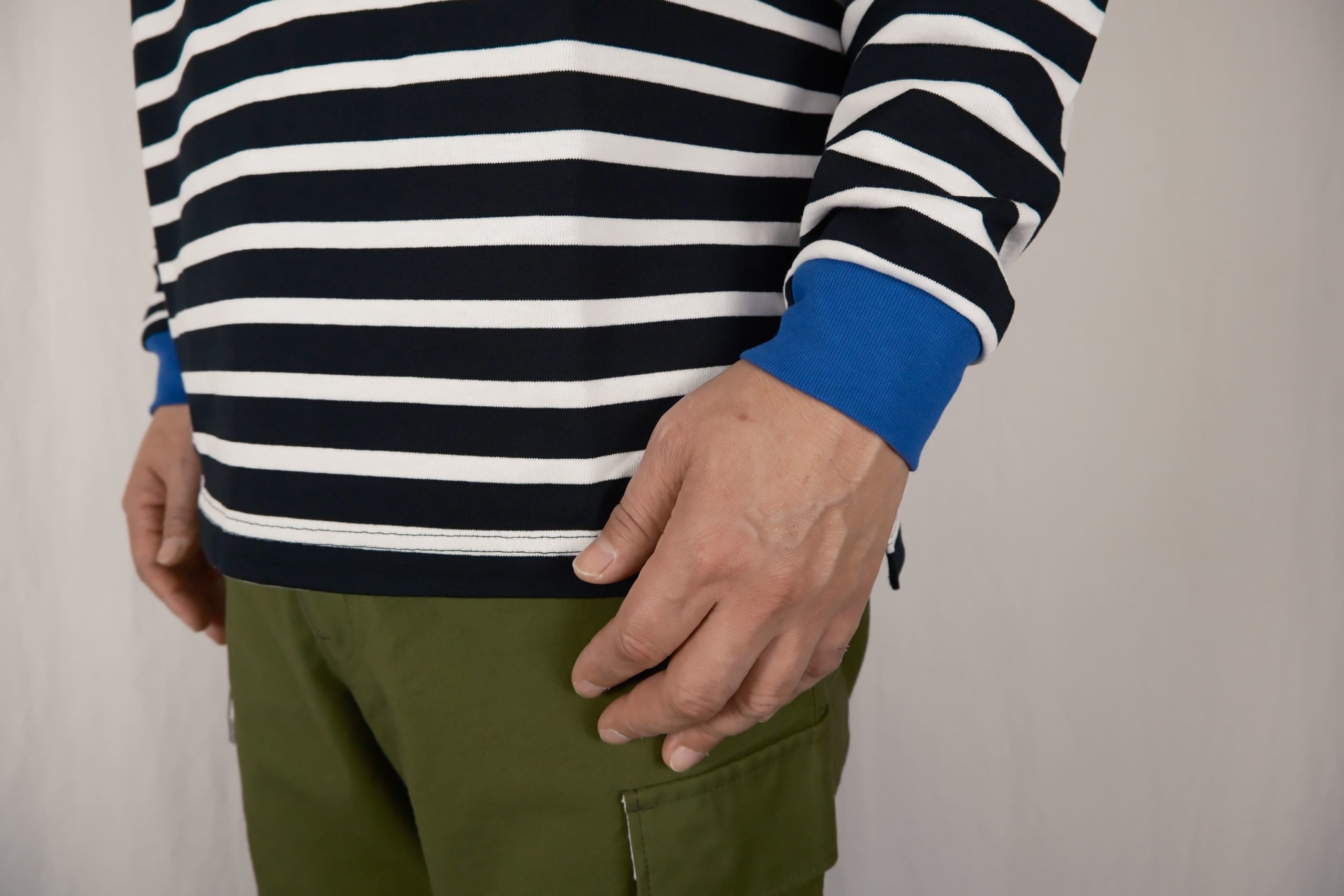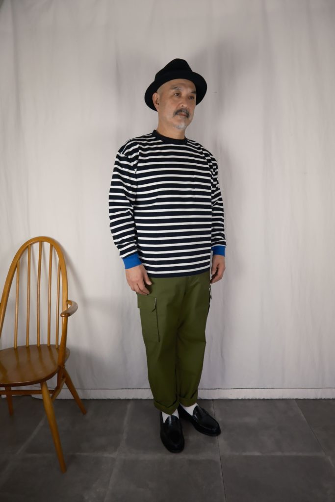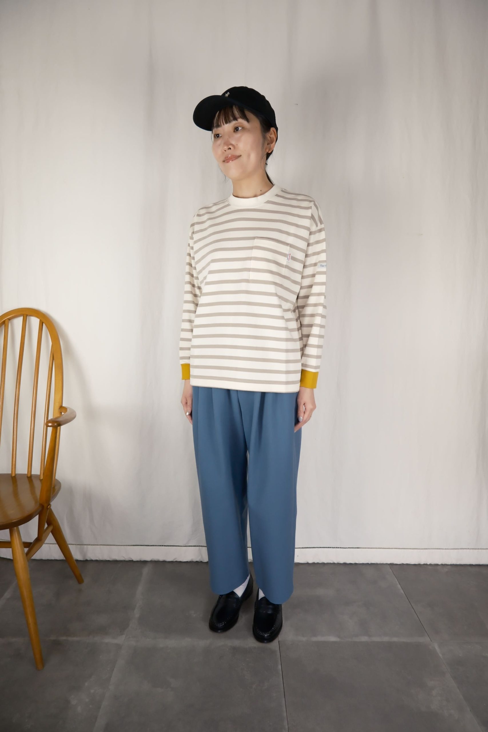 ボーダーの代名詞ともいえるボートネックを、日常でよりラフに着られる クルーネック仕様にアレンジ。